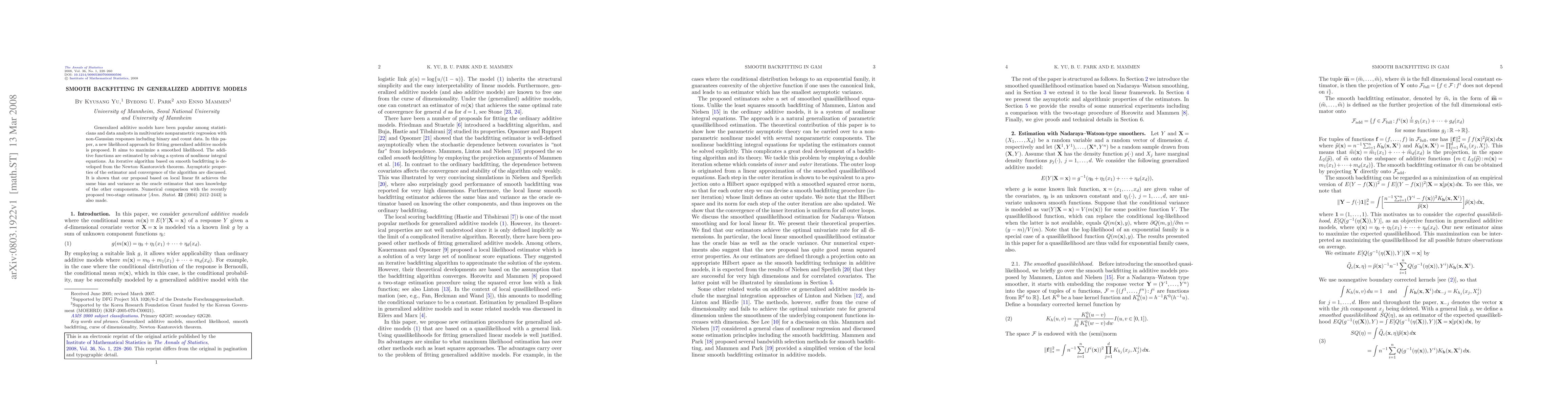 A new approach for fitting generalized additive models is proposed, using a smoothed likelihood to maximize estimates of additive functions through an iterative algorithm based on smooth backfitting, achieving the same bias and variance as the oracle estimator.