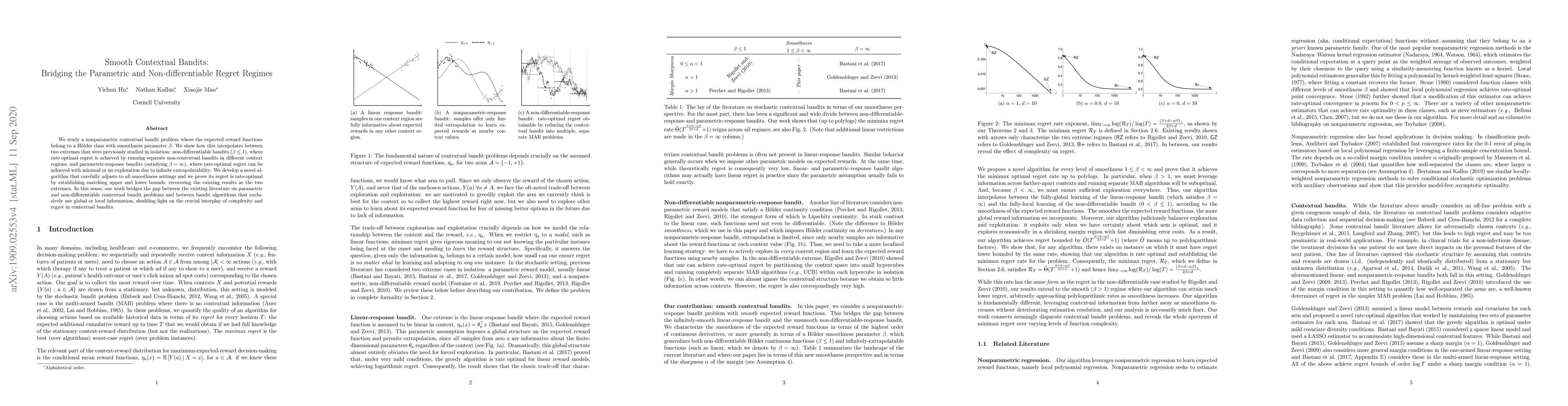 This paper introduces a novel algorithm for nonparametric contextual bandits that interpolates between non-differentiable and parametric-response regimes, achieving rate-optimal regret by leveraging the smoothness parameter $\beta$. The algorithm bridges existing literature gaps and demonstrates the interplay between complexity and regret in contextual bandits.