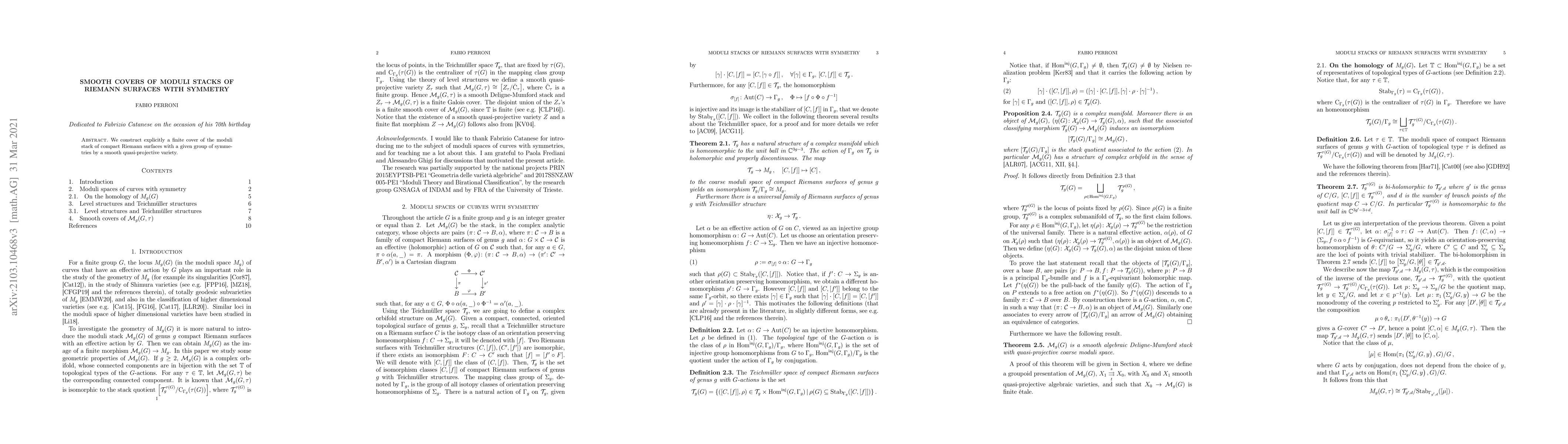 This paper constructs an explicit finite cover of the moduli stack of compact Riemann surfaces possessing a specified symmetry group using a smooth quasi-projective variety. The result facilitates a better understanding of the geometric and topological properties of these surfaces.