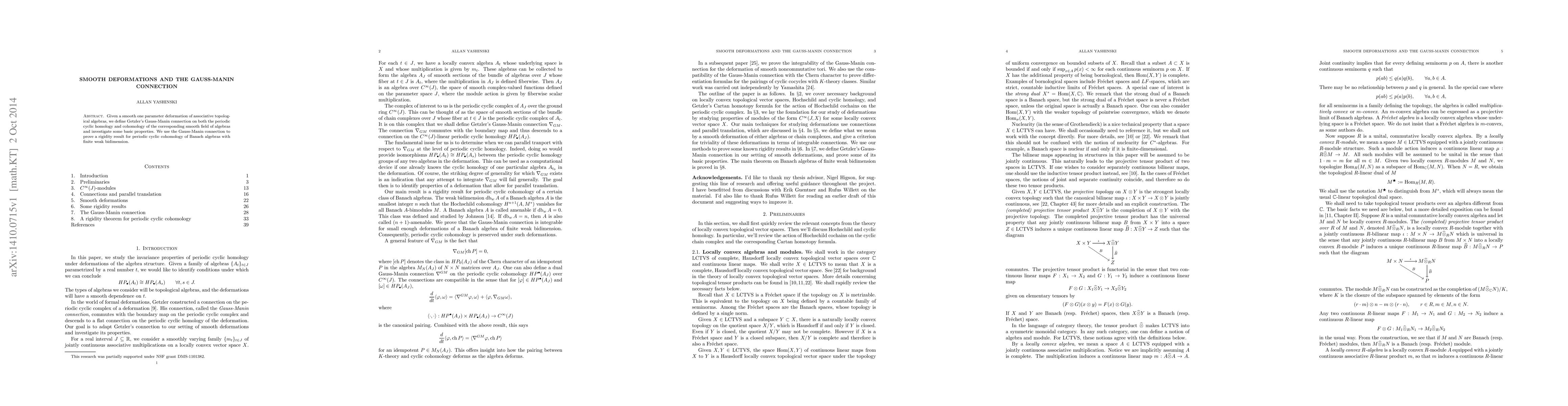 Given a smooth one parameter deformation of associative topological algebras, we define Getzler's Gauss-Manin connection on both the periodic cyclic homology and cohomology of the corresponding smooth field of algebras and investigate some basic properties. We use the Gauss-Manin connection to prove a rigidity result for periodic cyclic cohomology of Banach algebras with finite weak bidimension.