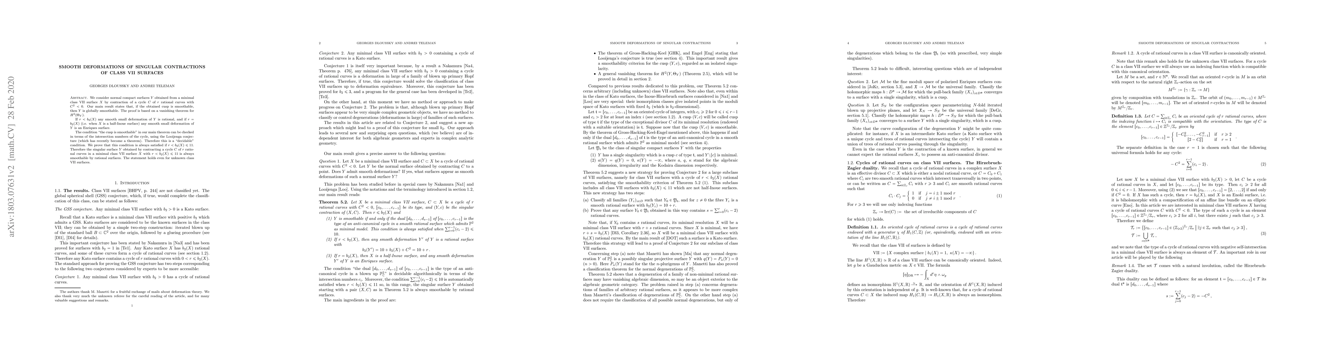 This paper investigates the smoothability of singular contractions of class VII surfaces, proving that normal compact surfaces obtained from minimal class VII surfaces by contracting a cycle of rational curves are globally smoothable if the resulting cusp is smoothable. The smoothability condition is shown to be decidable and is always satisfied for $r < b_2(X) \leq 11$, ensuring the smoothability of such surfaces by rational surfaces.