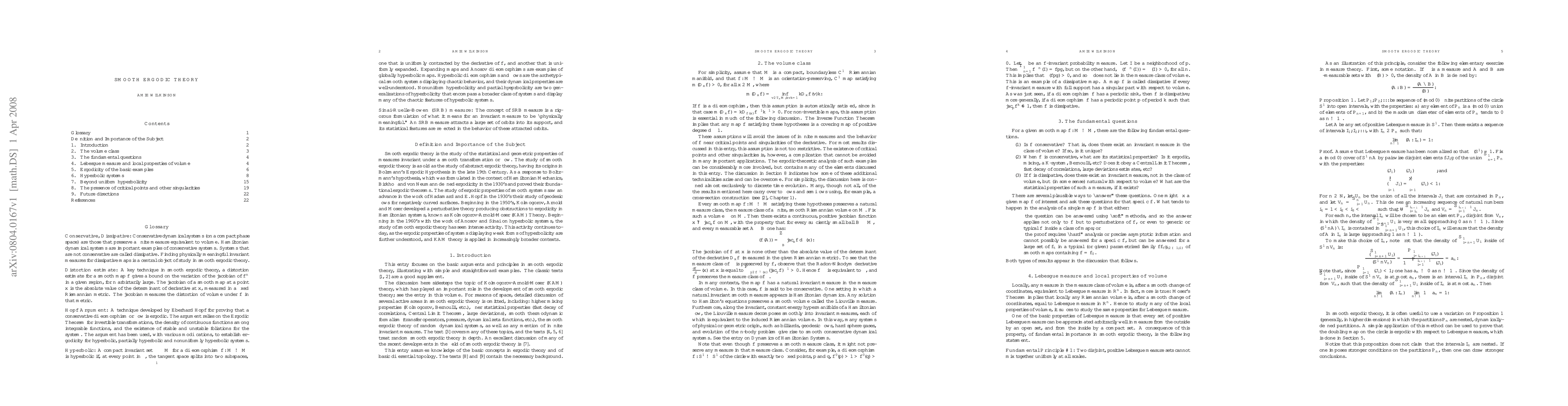 This is an expository article/encyclopedia entry explaining the history, techniques, and central results in the field of smooth ergodic theory.
