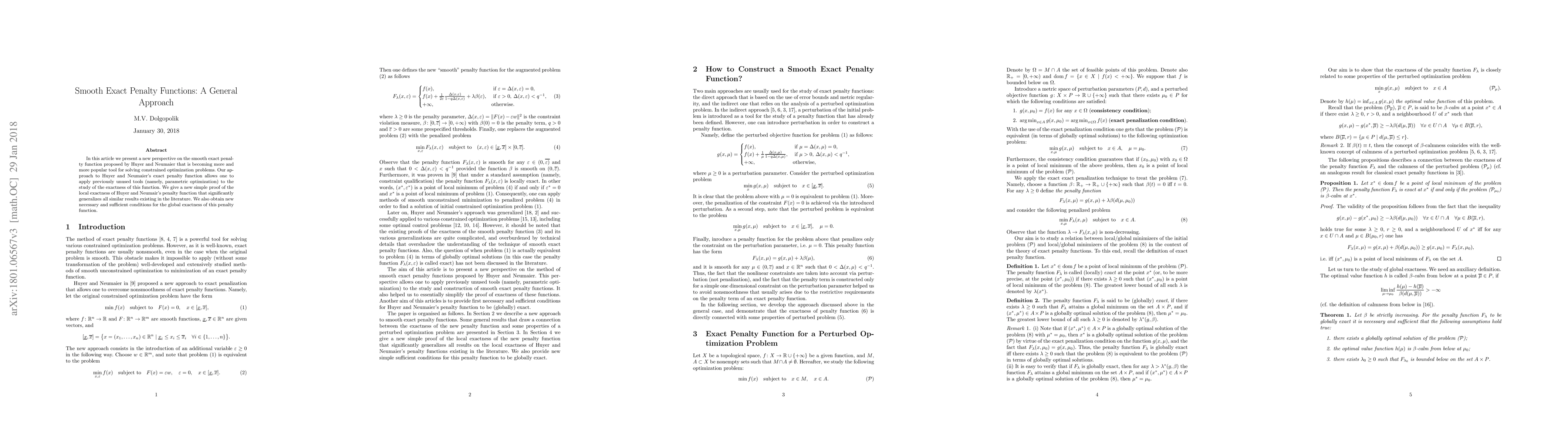 This paper introduces a novel perspective on smooth exact penalty functions, applying parametric optimization to enhance understanding of Huyer and Neumaier's approach for solving constrained optimization problems. It provides a simplified, generalized proof of local exactness and new necessary and sufficient conditions for global exactness.