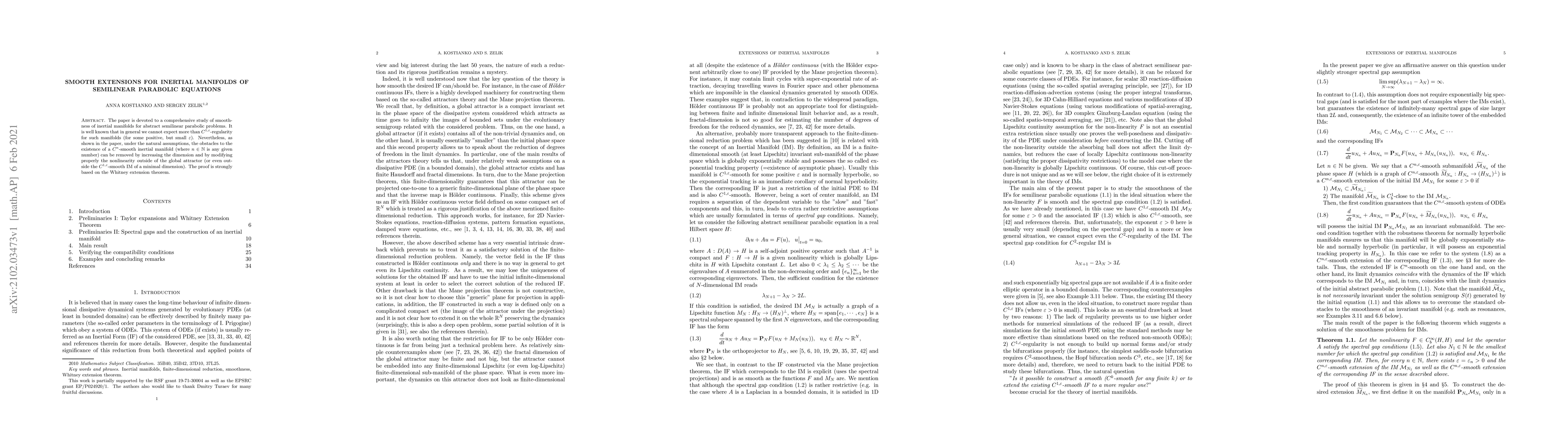 This paper investigates the smoothness of inertial manifolds for semilinear parabolic equations, demonstrating that under certain conditions, the obstacles to achieving $C^n$-smoothness can be overcome by increasing the dimension and appropriately modifying the nonlinearity, utilizing the Whitney extension theorem for the proof.