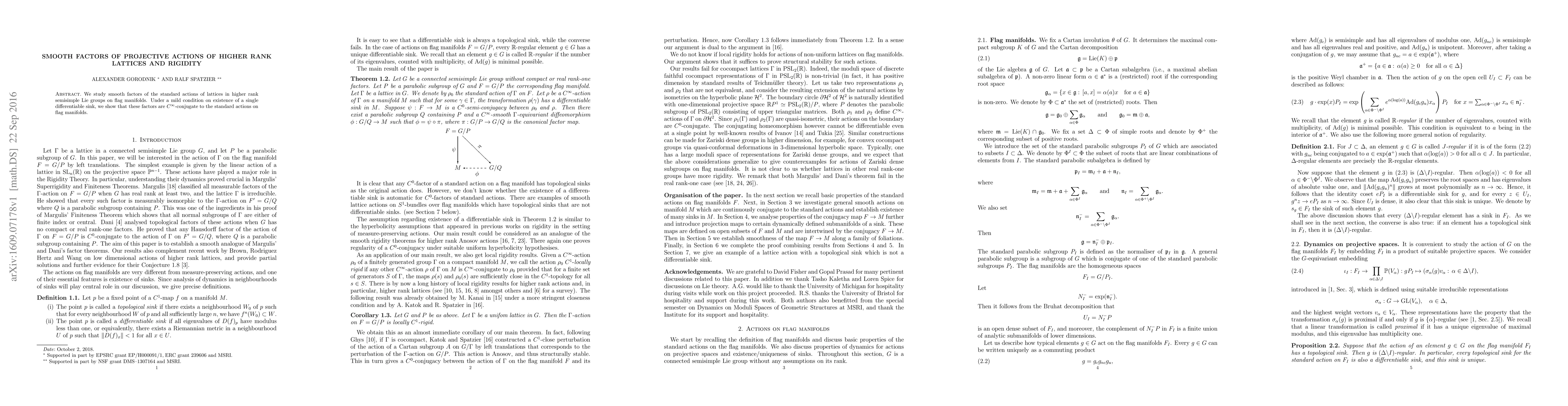 Summary: This paper investigates smooth factors of lattices in higher rank semisimple Lie groups acting on flag manifolds, proving that under a specific condition, these factors are $C^{\infty}$-conjugate to standard actions. The study highlights the rigidity of these actions.