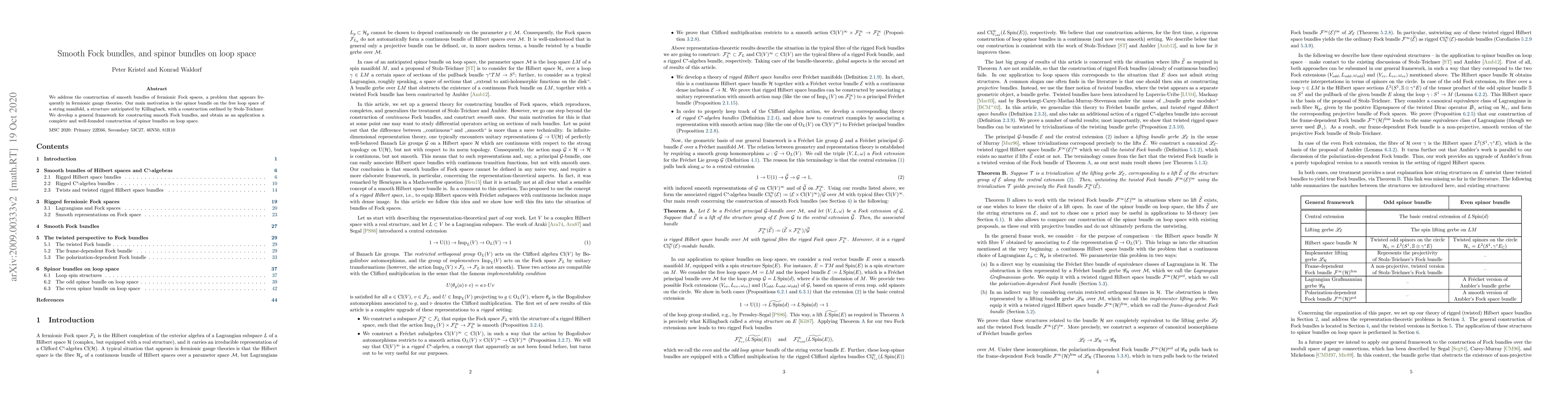 The paper constructs smooth bundles of fermionic Fock spaces for use in fermionic gauge theories, focusing on the spinor bundle on loop space, and provides a complete framework for such constructions. The methodology aligns with the approach suggested by Killingback and Stolz-Teichner.