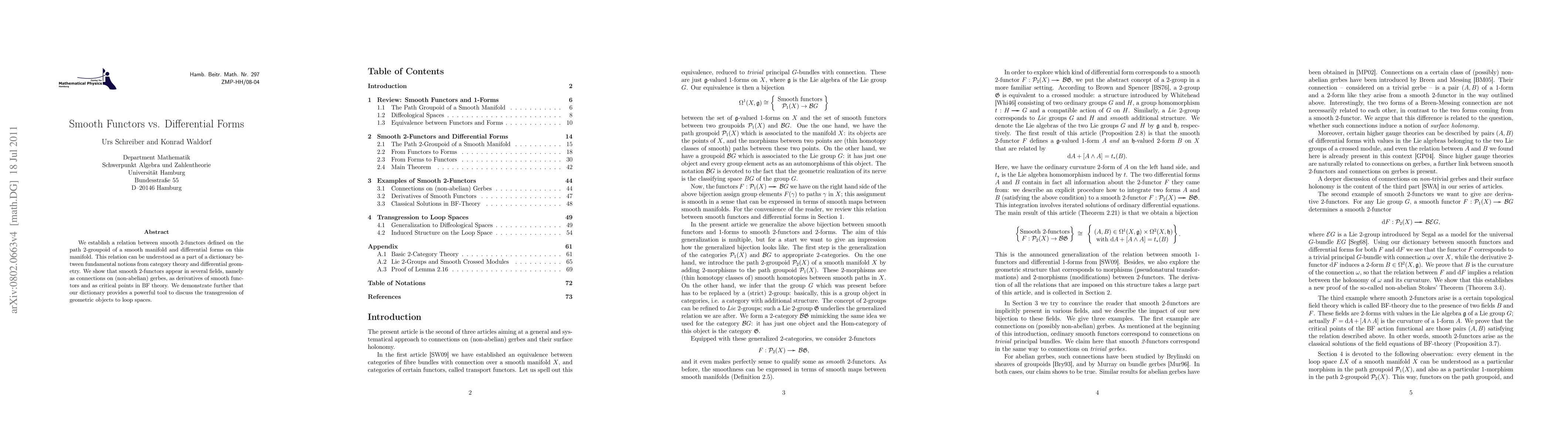 This paper establishes a connection between smooth 2-functors on the path 2-groupoid of a smooth manifold and differential forms, serving as a bridge between category theory and differential geometry. It also highlights the relevance of smooth 2-functors in fields like gerbe connections, curvature, and BF theory, and shows how this dictionary aids in understanding geometric object transgression to loop spaces.