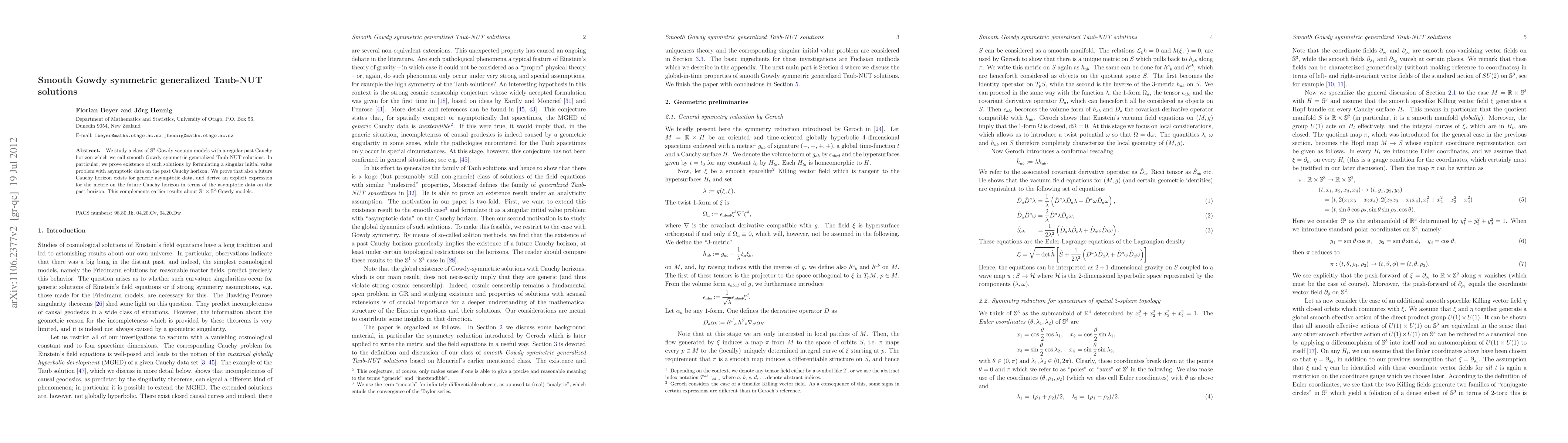 This paper explores smooth Gowdy symmetric generalized Taub-NUT solutions, proving their existence through a singular initial value problem. It establishes the presence of a future Cauchy horizon for generic asymptotic data and provides an explicit metric expression for the future horizon in terms of the past horizon's data.