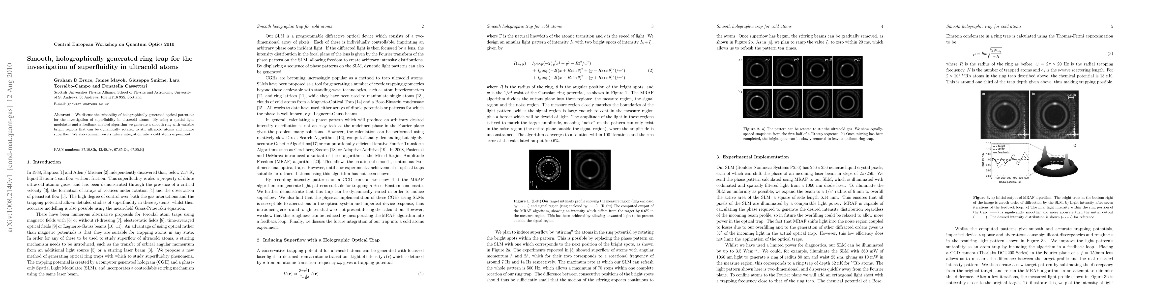 Researchers developed a holographically generated ring trap for studying superfluidity in ultracold atoms, allowing for dynamic rotation of the trap to induce superflow.