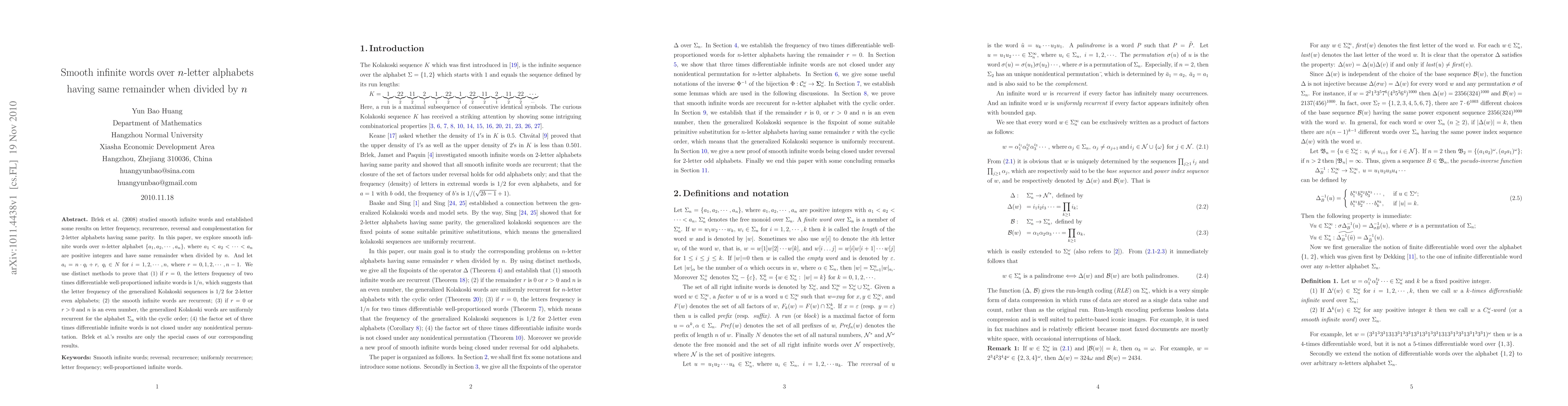 infinite words over $n$-letter alphabet $\{a_1,a_2,...,a_n\}$, where