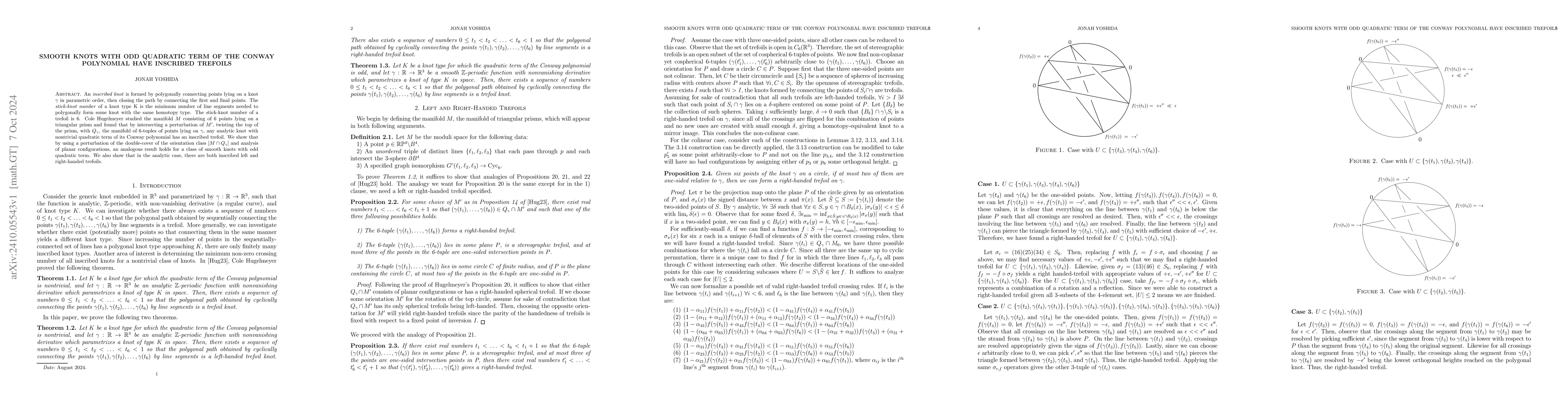 This paper demonstrates that smooth knots with an odd quadratic term in their Conway polynomial inherently possess inscribed trefoils, extending results previously shown for analytic knots. The study employs a perturbation of the double-cover of a specific manifold intersection and analyzes planar configurations to establish this property.