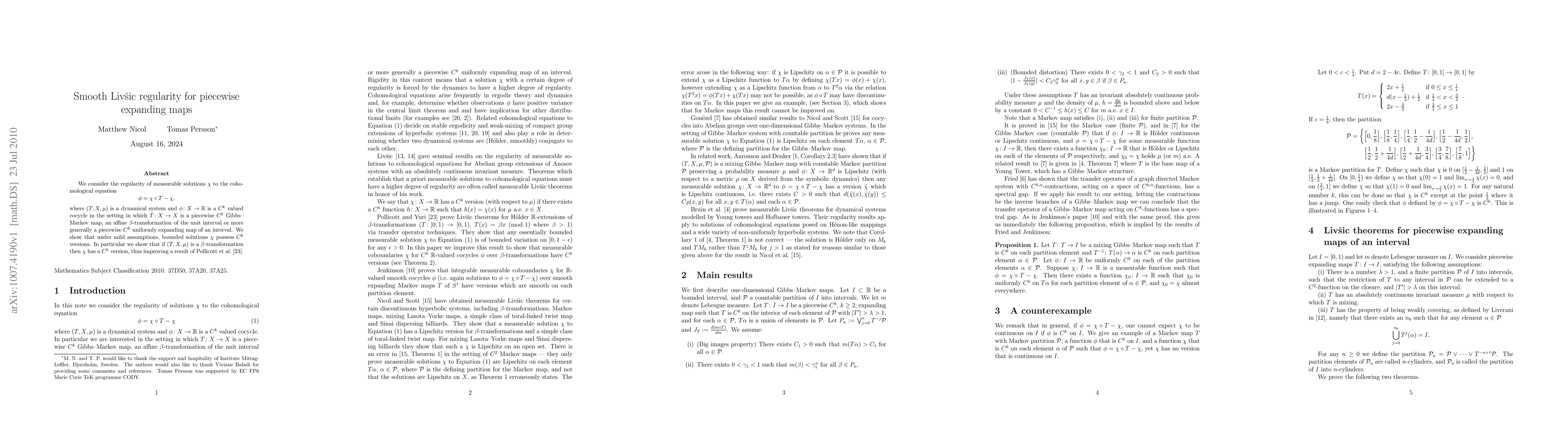 We consider the regularity of measurable solutions $\chi$ to the cohomological equation \[ \phi = \chi \circ T -\chi, \] where $(T,X,\mu)$ is a dynamical system and $\phi \colon X\rightarrow \R$ is a $C^k$ valued cocycle in the setting in which $T \colon X\rightarrow X$ is a piecewise $C^k$ Gibbs--Markov map, an affine $\beta$-transformation of the unit interval or more generally a piecewise $C^{k}$ uniformly expanding map of an interval. We show that under mild assumptions, bounded solutions $\chi$ possess $C^k$ versions. In particular we show that if $(T,X,\mu)$ is a $\beta$-transformation then $\chi$ has a $C^k$ version, thus improving a result of Pollicott et al.~\cite{Pollicott-Yuri}.