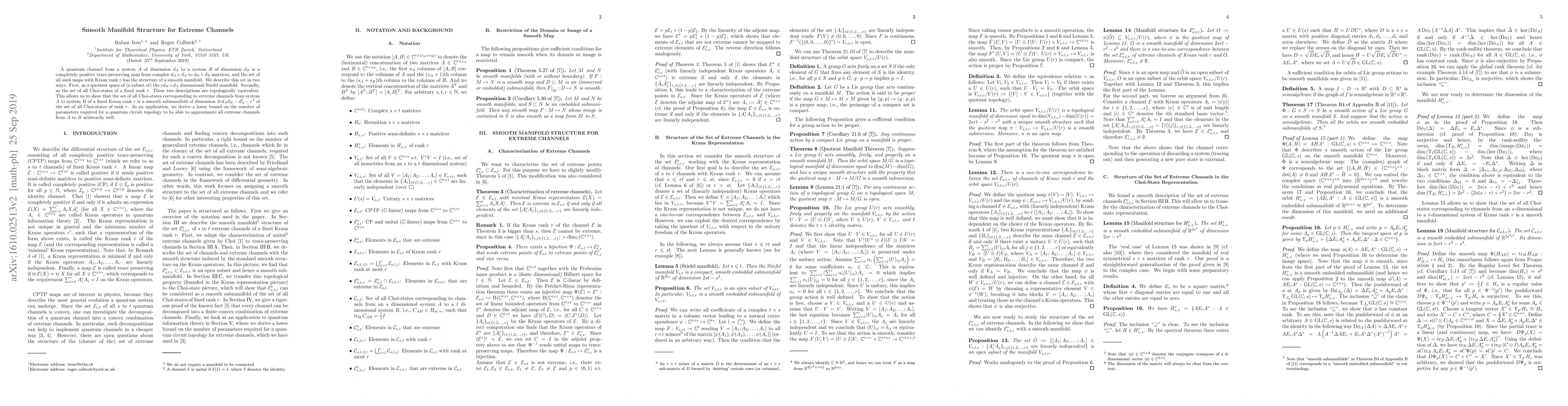 A quantum channel from a system $A$ of dimension $d_A$ to a system $B$ of dimension $d_B$ is a completely positive trace-preserving map from complex $d_A\times d_A$ to $d_B\times d_B$ matrices, and the set of all such maps with Kraus rank $r$ has the structure of a smooth manifold. We describe this set in two ways. First, as a quotient space of (a subset of) the $rd_B\times d_A$ dimensional Stiefel manifold. Secondly, as the set of all Choi-states of a fixed rank $r$. These two descriptions are topologically equivalent. This allows us to show that the set of all Choi-states corresponding to extreme channels from system $A$ to system $B$ of a fixed Kraus rank $r$ is a smooth submanifold of dimension $2rd_Ad_B-d_A^2-r^2$ of the set of all Choi-states of rank $r$. As an application, we derive a lower bound on the number of parameters required for a quantum circuit topology to be able to approximate all extreme channels from $A$ to $B$ arbitrarily well.