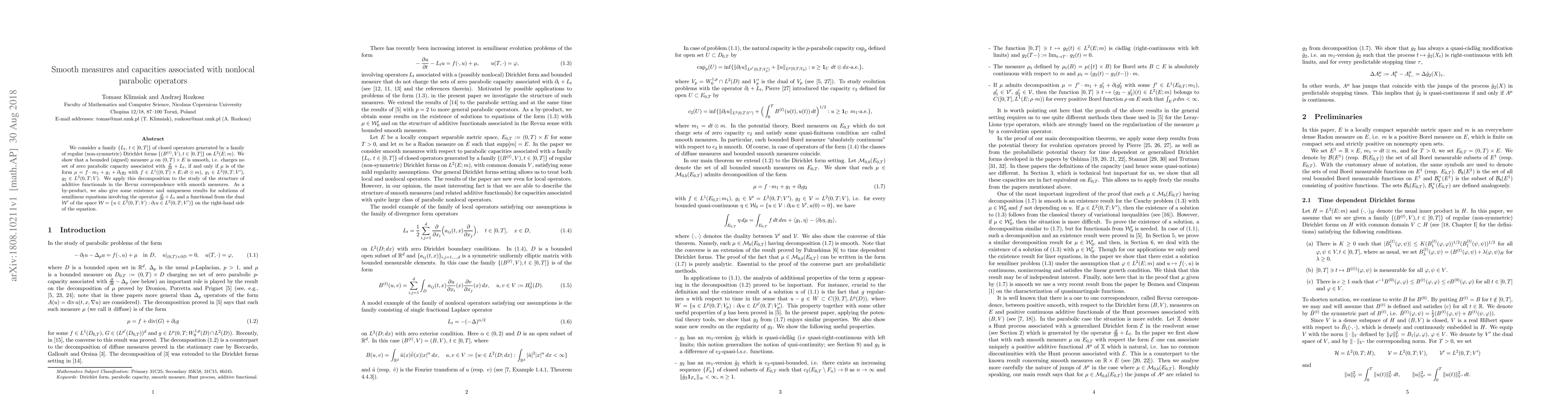 A research paper explores the relationship between nonlocal parabolic operators and smooth measures, providing a decomposition of smooth measures into specific components and implications for semilinear equations.