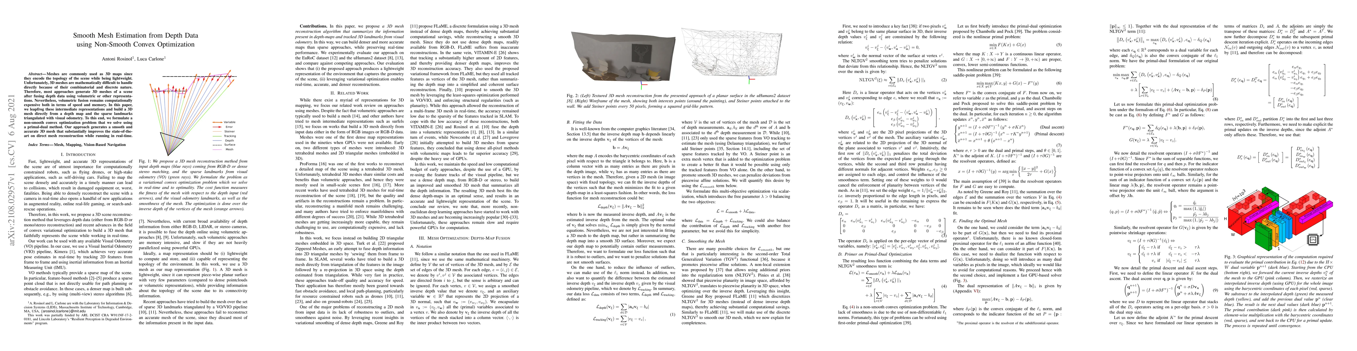Meshes are commonly used as 3D maps since they encode the topology of the scene while being lightweight. Unfortunately, 3D meshes are mathematically difficult to handle directly because of their combinatorial and discrete nature. Therefore, most approaches generate 3D meshes of a scene after fusing depth data using volumetric or other representations. Nevertheless, volumetric fusion remains computationally expensive both in terms of speed and memory. In this paper, we leapfrog these intermediate representations and build a 3D mesh directly from a depth map and the sparse landmarks triangulated with visual odometry. To this end, we formulate a non-smooth convex optimization problem that we solve using a primal-dual method. Our approach generates a smooth and accurate 3D mesh that substantially improves the state-of-the-art on direct mesh reconstruction while running in real-time.