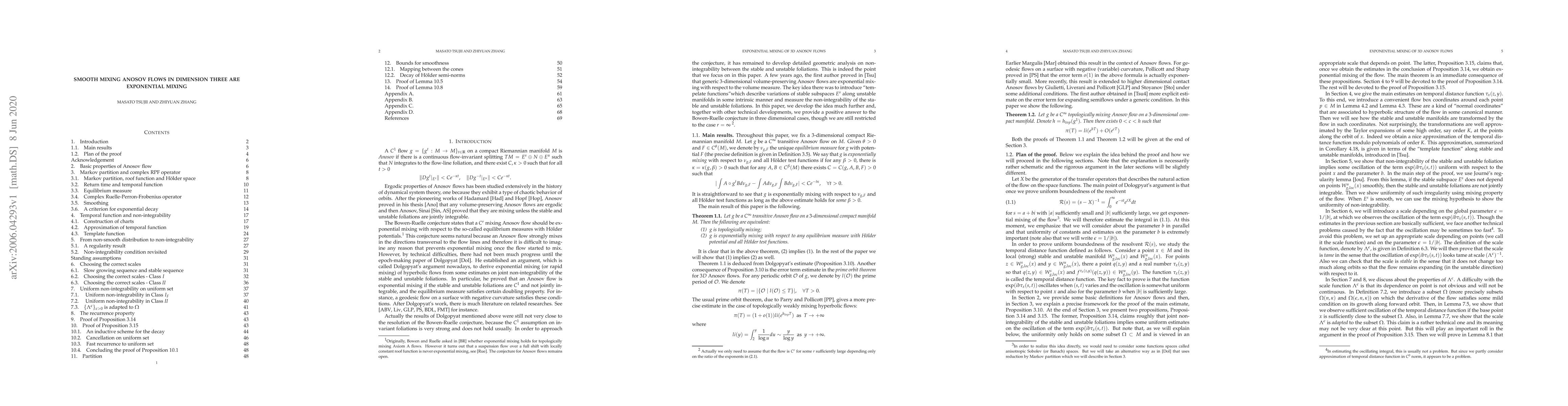 Summary: This paper demonstrates that smooth, topologically mixing Anosov flows in three dimensions exhibit exponential mixing behavior concerning any equilibrium measure associated with a Hölder potential. The result highlights the strong dynamical mixing properties of such flows.