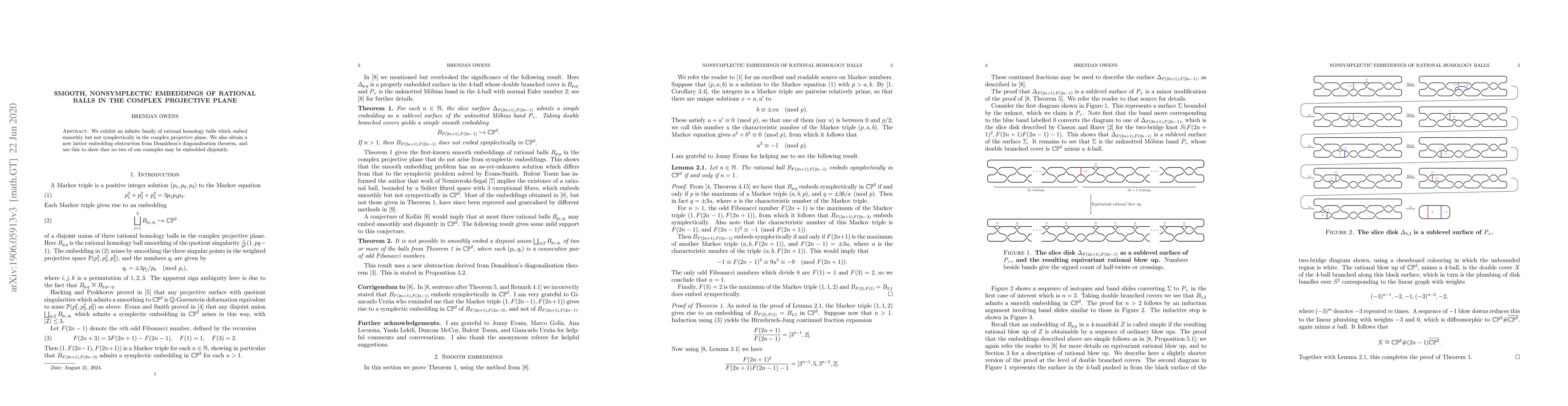 Summary: The paper presents an infinite series of rational homology balls that smoothly embed in the complex projective plane but not symplectically. It introduces a lattice embedding obstruction derived from Donaldson's theorem, proving that none of these examples can be disjointly embedded.