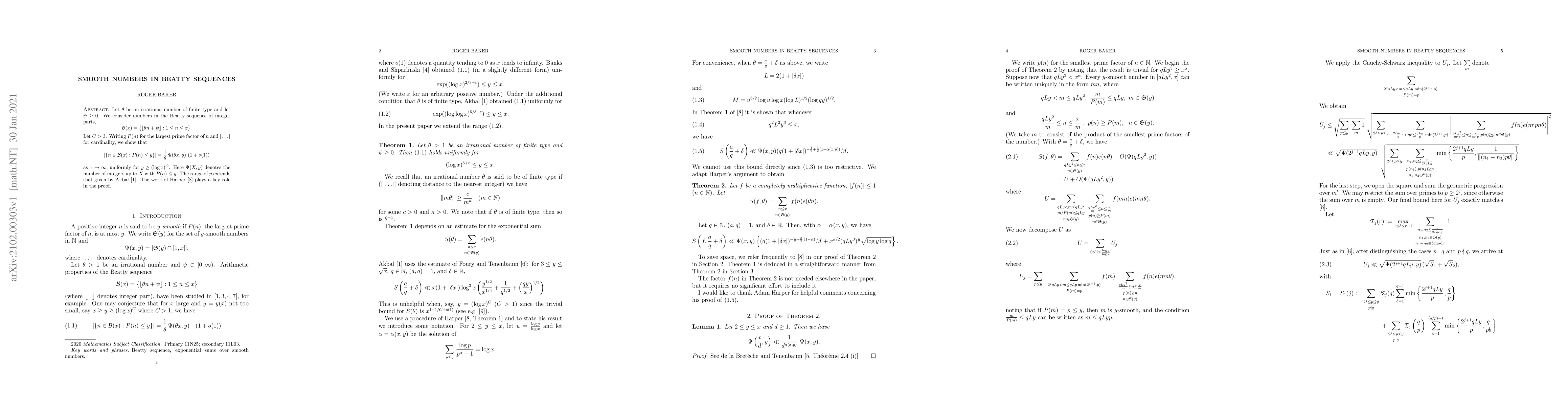 An asymptotic formula is given for the number of y-smooth numbers up to x in a Beatty sequence corresponding to an irrational number of finite type.