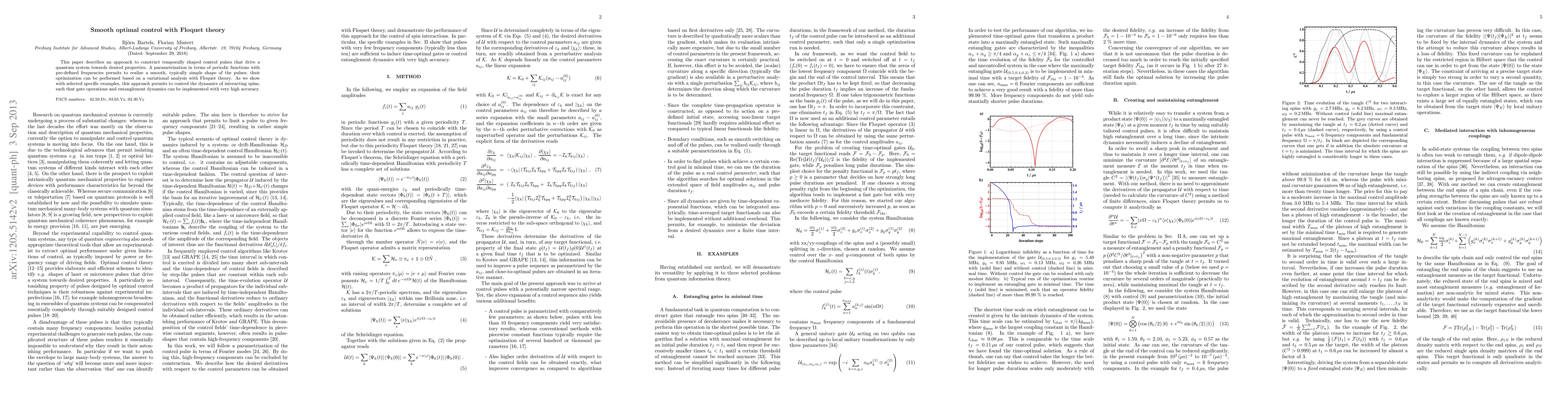 This paper describes an approach to construct temporally shaped control pulses that drive a quantum system towards desired properties. A parametrization in terms of periodic functions with pre-defined frequencies permits to realize a smooth, typically simple shape of the pulses; their optimization can be performed based on a variational analysis with Floquet theory. As we show with selected specific examples, this approach permits to control the dynamics of interacting spins, such that gate operations and entanglement dynamics can be implemented with very high accuracy.