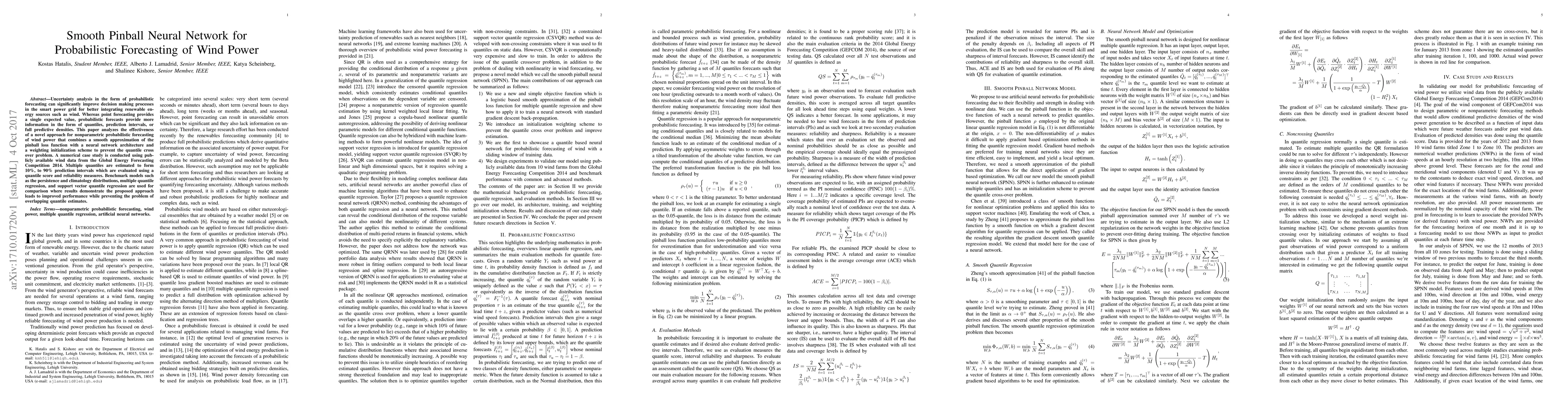 This paper introduces a smooth pinball neural network for probabilistic forecasting of wind power, combining a pinball loss function with a neural network to provide accurate quantile estimates. The proposed method outperforms benchmark models in predicting wind power intervals, demonstrating improved reliability and preventing quantile crossover issues.