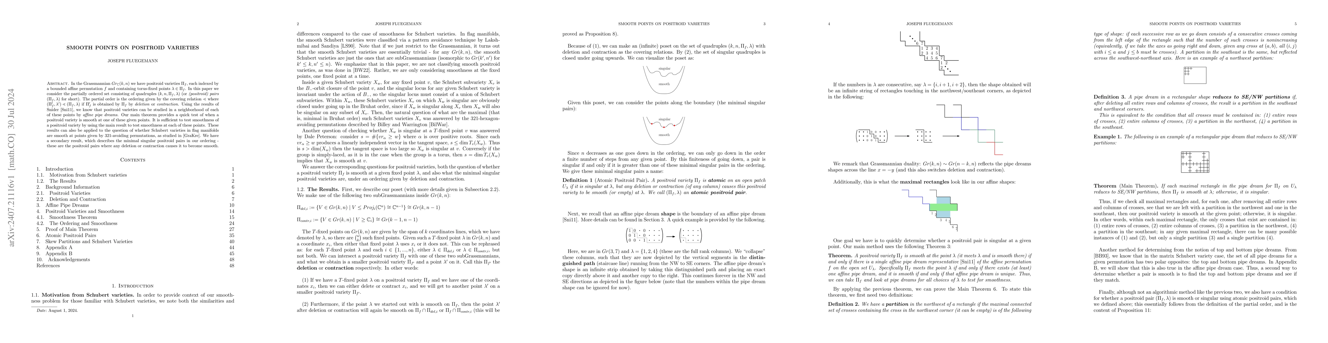 This paper investigates the smoothness of positroid varieties within the Grassmannian, determining when they are smooth at torus-fixed points using affine pipe dreams. The main theorem provides a criterion for smoothness based on deletion or contraction operations, and a secondary result identifies minimal singular positroid pairs.