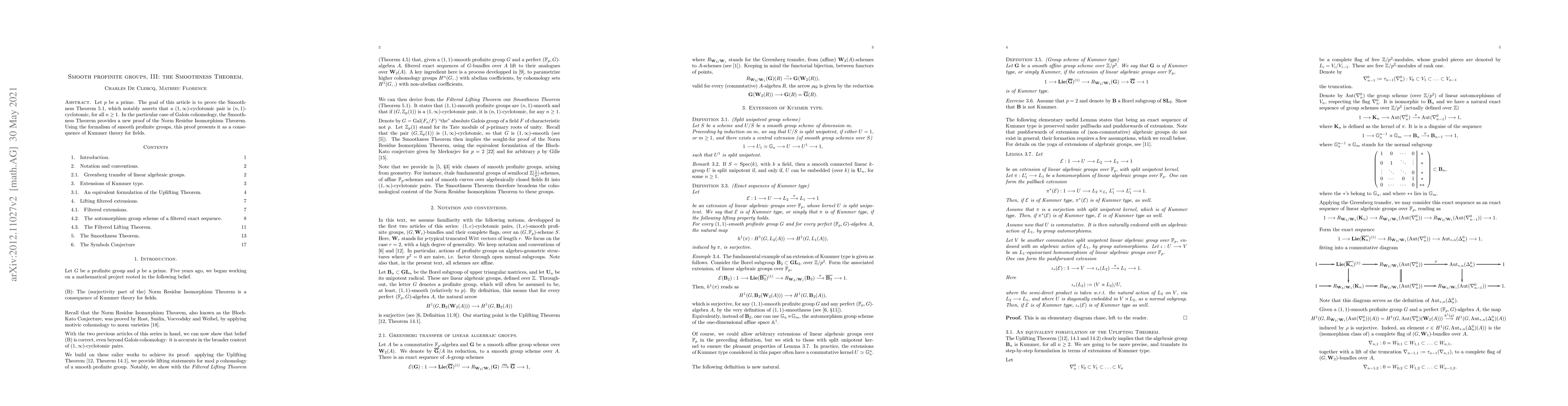 This paper proves the Smoothness Theorem, asserting that any $(1,\infty)$-cyclotomic pair is $(n,1)$-cyclotomic for all $n \geq 1$, utilizing the framework of smooth profinite groups and providing a new proof of the Norm Residue Isomorphism Theorem through Kummer theory.