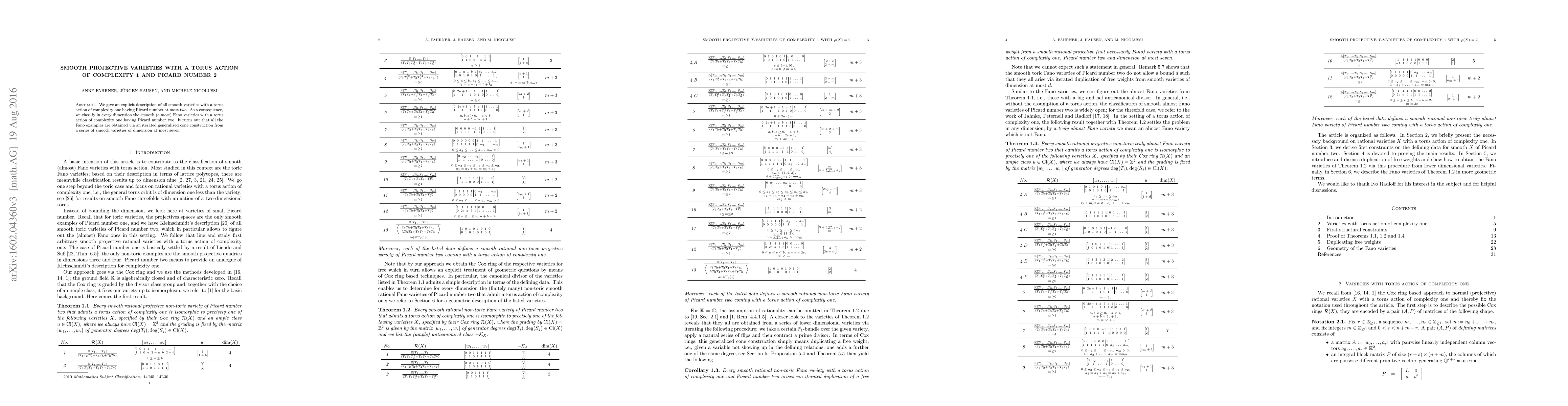 This paper classifies smooth projective varieties with a torus action of complexity 1 and Picard number 2, detailing that all Fano examples arise from an iterated generalized cone construction from lower-dimensional varieties.