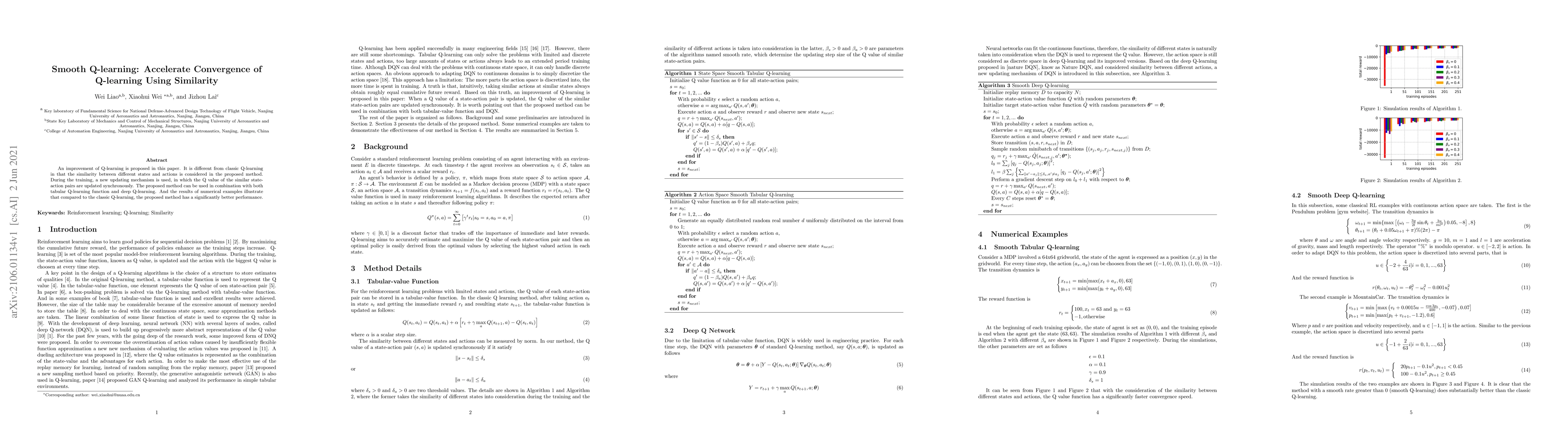 This paper proposes a Q-learning method that considers state-action similarity to accelerate convergence, achieving better performance than classic Q-learning in numerical examples.
