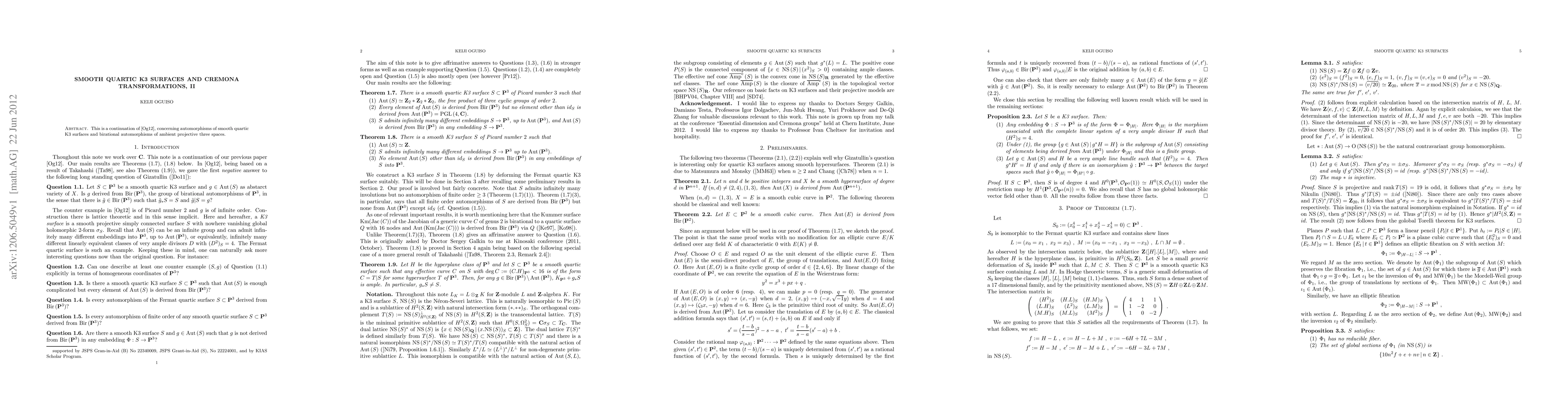 This paper explores the automorphisms of smooth quartic K3 surfaces and their birational automorphisms within ambient projective three-space, building on previous work [Og12]. It focuses on the role of Cremona transformations in this context.