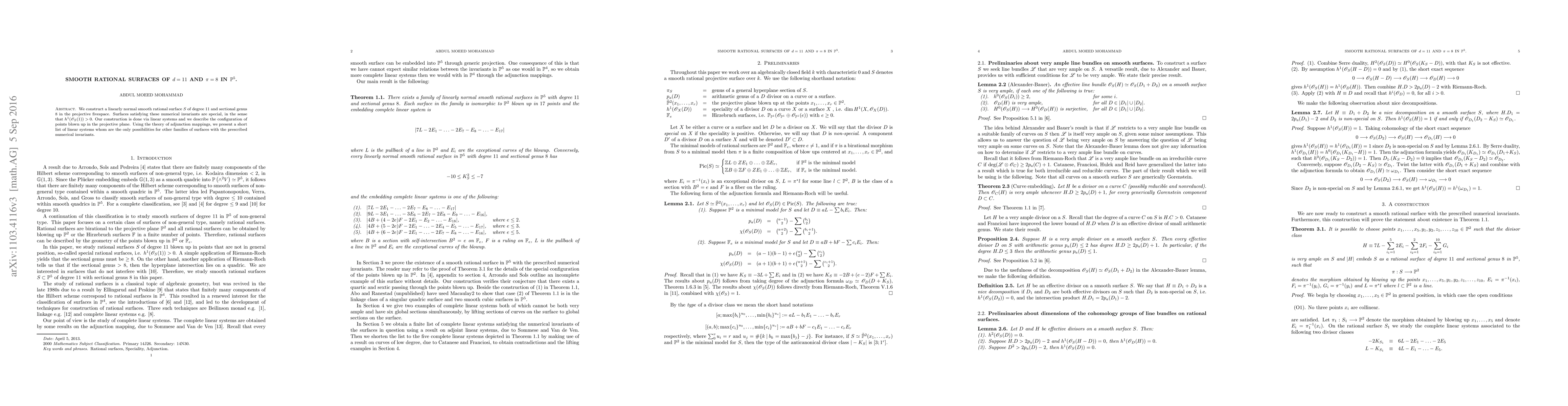 We construct a linearly normal smooth rational surface S of degree 11 and sectional genus 8 in the projective fivespace. Surfaces satisfying these numerical invariants are special, in the sense that $h^1(\mathscr{O}_S(1))>0$. Our construction is done via linear systems and we describe the configuration of points blown up in the projective plane. We also present a short list, generated by the adjunction mapping, of linear systems whom are the only possibilities for other families of surfaces with the prescribed numerical invariants.