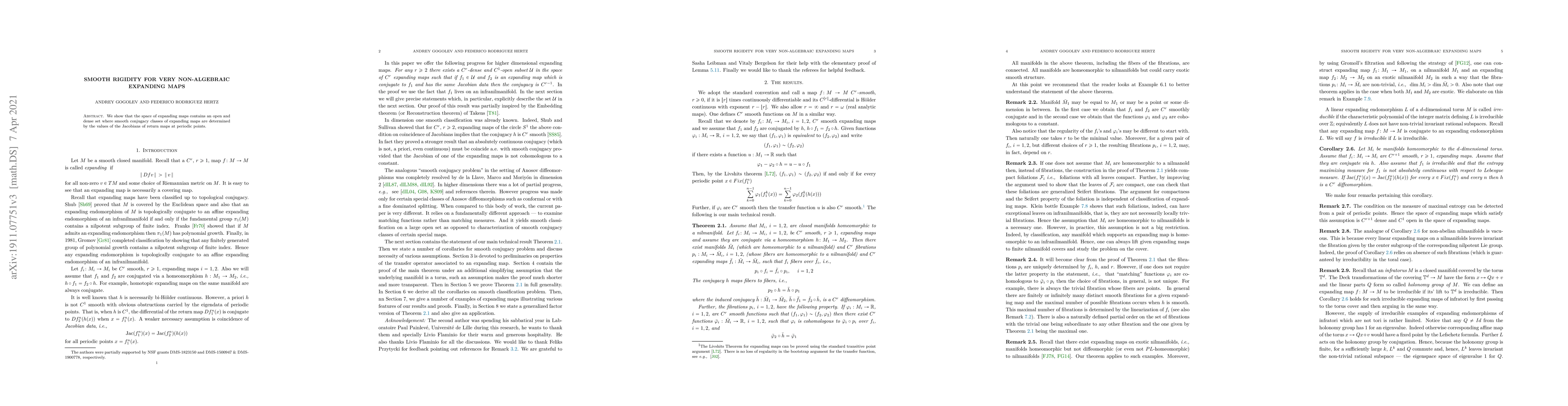 Research finds an open and dense set in expanding maps where smooth conjugacy classes are determined by return map Jacobians at periodic points.