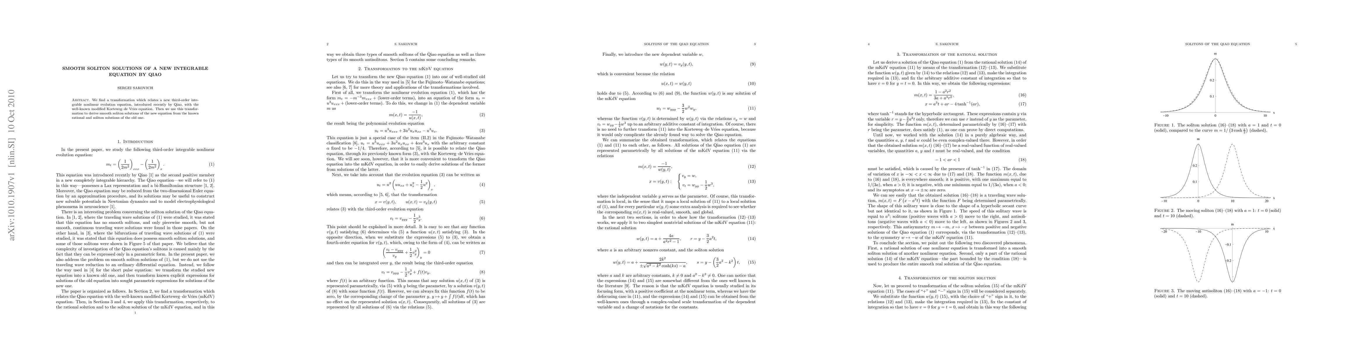The research derives smooth soliton solutions of a new integrable nonlinear evolution equation by Qiao using a transformation that relates it to the modified Korteweg-de Vries (mKdV) equation.