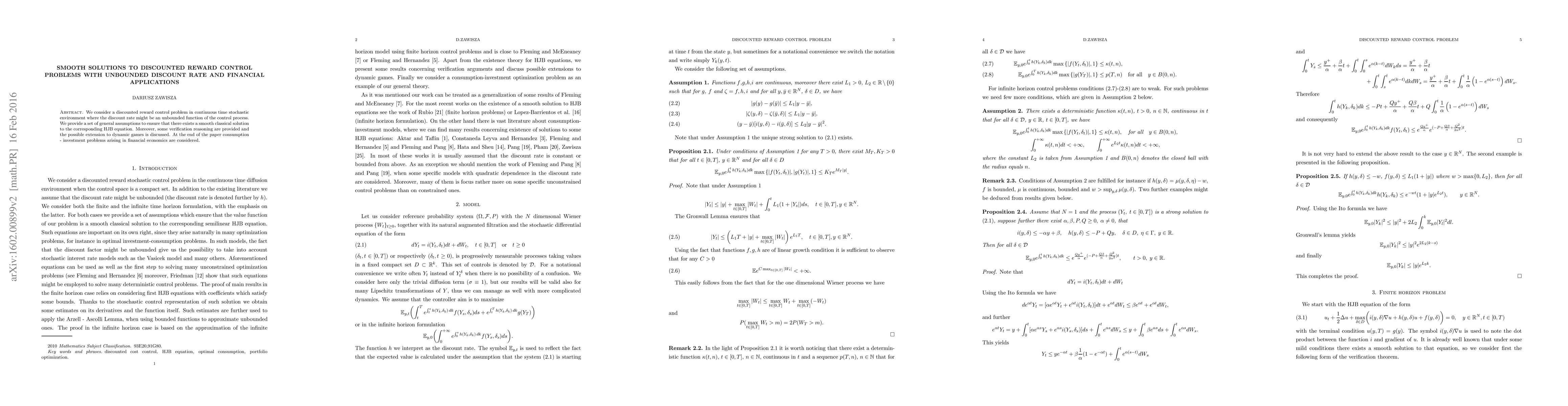 Researchers develop a framework for solving discounted reward control problems with unbounded discount rates, focusing on smooth classical solutions and their applications in financial economics.