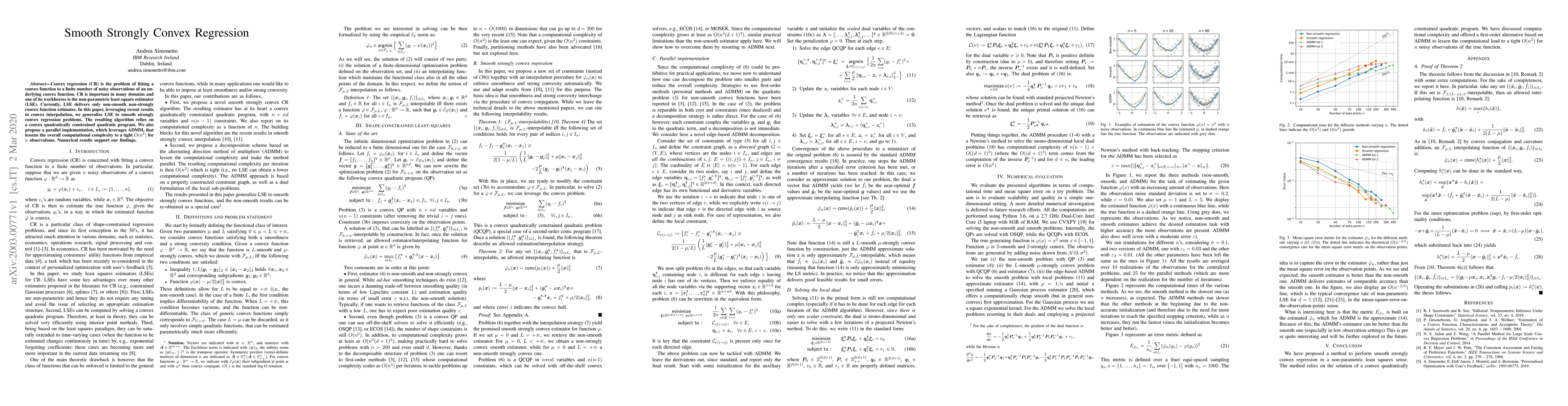 Convex regression (CR) is the problem of fitting a convex function to a finite number of noisy observations of an underlying convex function. CR is important in many domains and one of its workhorses is the non-parametric least square estimator (LSE). Currently, LSE delivers only non-smooth non-strongly convex function estimates. In this paper, leveraging recent results in convex interpolation, we generalize LSE to smooth strongly convex regression problems. The resulting algorithm relies on a convex quadratically constrained quadratic program. We also propose a parallel implementation, which leverages ADMM, that lessens the overall computational complexity to a tight $O(n^2)$ for $n$ observations. Numerical results support our findings.