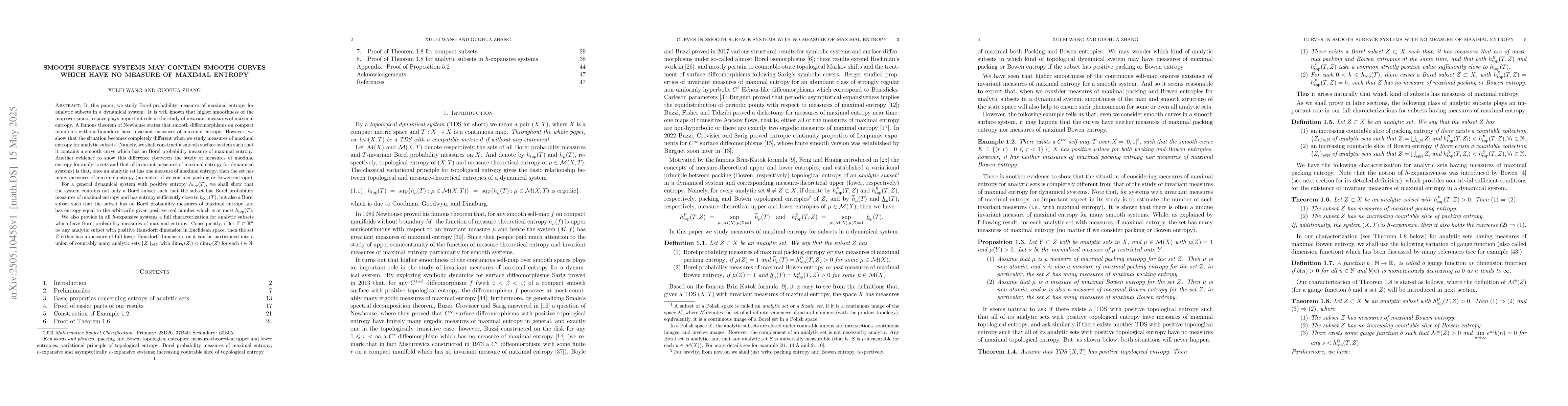 The paper presents a detailed analysis and construction demonstrating the existence of smooth curves in certain systems lacking maximal entropy measures, alongside a full characterization for analytic subsets with maximal entropy in h-expansive systems.