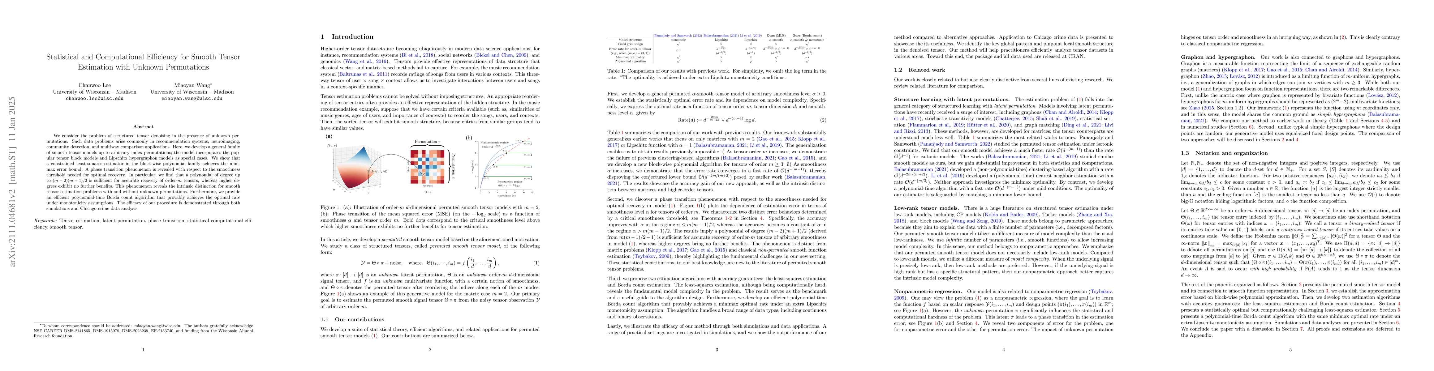 We consider the problem of structured tensor denoising in the presence of unknown permutations. Such data problems arise commonly in recommendation system, neuroimaging, community detection, and multiway comparison applications. Here, we develop a general family of smooth tensor models up to arbitrary index permutations; the model incorporates the popular tensor block models and Lipschitz hypergraphon models as special cases. We show that a constrained least-squares estimator in the block-wise polynomial family achieves the minimax error bound. A phase transition phenomenon is revealed with respect to the smoothness threshold needed for optimal recovery. In particular, we find that a polynomial of degree up to $(m-2)(m+1)/2$ is sufficient for accurate recovery of order-$m$ tensors, whereas higher degree exhibits no further benefits. This phenomenon reveals the intrinsic distinction for smooth tensor estimation problems with and without unknown permutations. Furthermore, we provide an efficient polynomial-time Borda count algorithm that provably achieves optimal rate under monotonicity assumptions. The efficacy of our procedure is demonstrated through both simulations and Chicago crime data analysis.