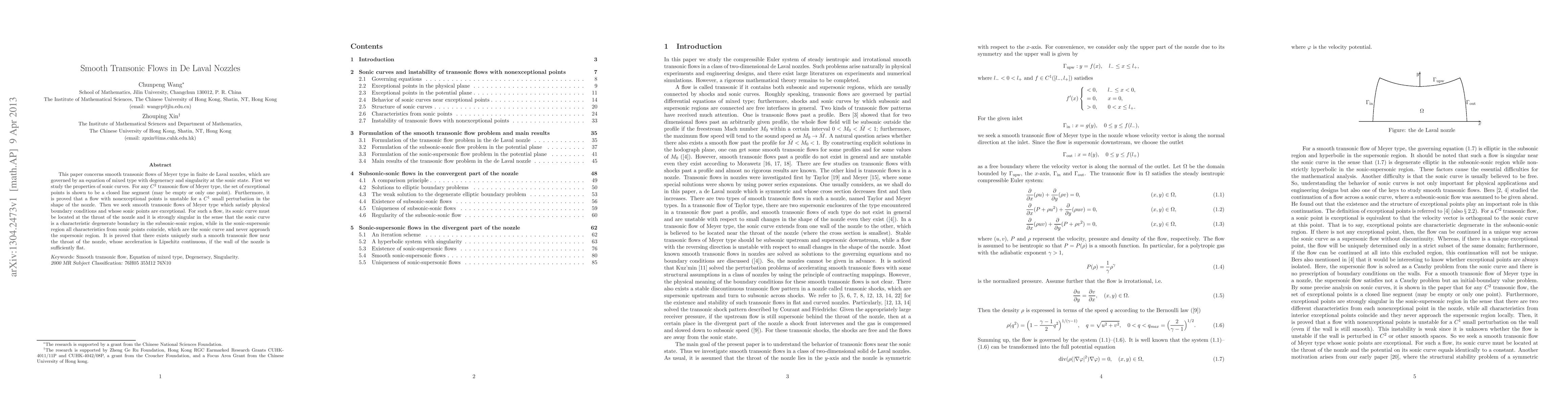 Research finds that smooth transonic flows in de Laval nozzles exist under specific conditions, which require unique sonic curves located at the nozzle throat, ensuring stability against small shape perturbations.