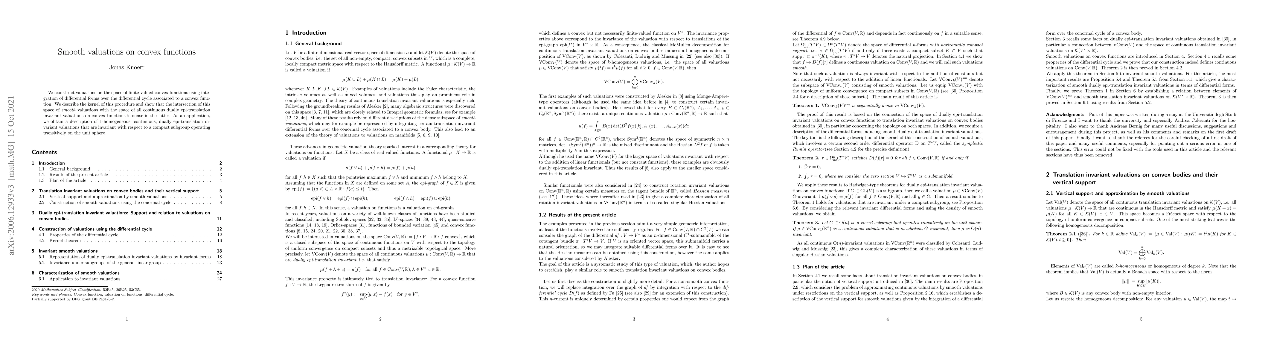 We construct valuations on the space of finite-valued convex functions using integration of differential forms over the differential cycle associated to a convex function. We describe the kernel of this procedure and show that the intersection of this space of smooth valuations with the space of all continuous dually epi-translation invariant valuations on convex functions is dense in the latter. As an application, we obtain a description of 1-homogeneous, continuous, dually epi-translation invariant valuations that are invariant with respect to a compact subgroup operating transitively on the unit sphere.