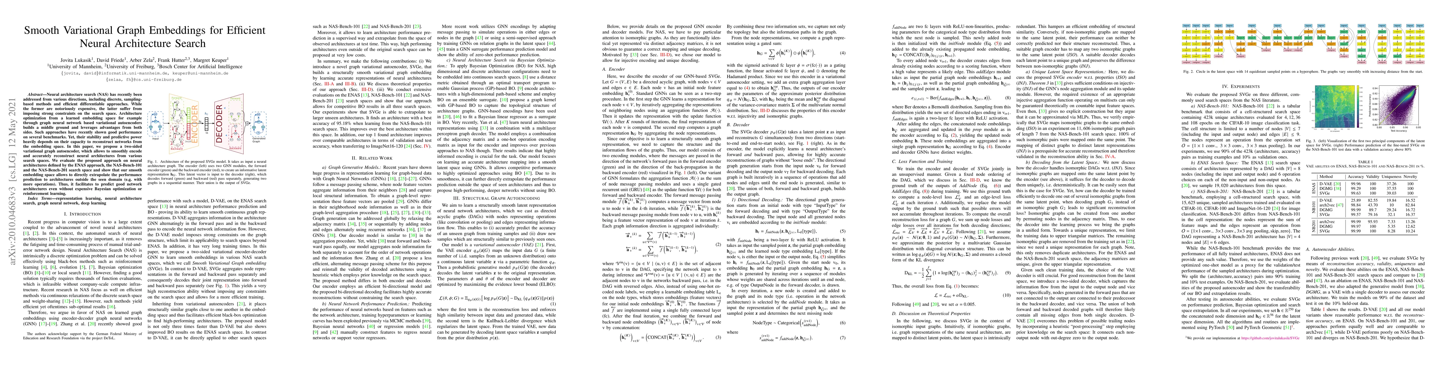 This paper proposes a smooth variational graph autoencoder for efficient neural architecture search, enabling accurate reconstruction of neural architectures and performance prediction for unseen architectures, thus reducing reliance on expensive optimization methods. The approach is evaluated on several benchmarks, demonstrating its effectiveness in predicting good network architectures.