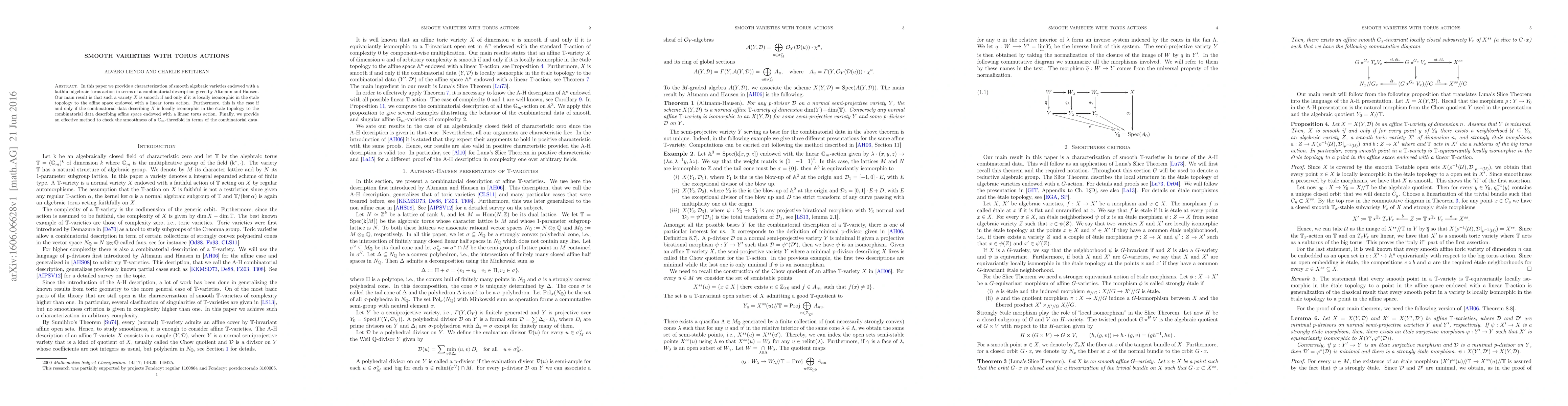 This paper characterizes smooth algebraic varieties with a faithful torus action using combinatorial data, proving they are smooth if locally isomorphic to affine space with a linear torus action. An effective method is also provided for checking the smoothness of Gm-threefolds based on combinatorial criteria.