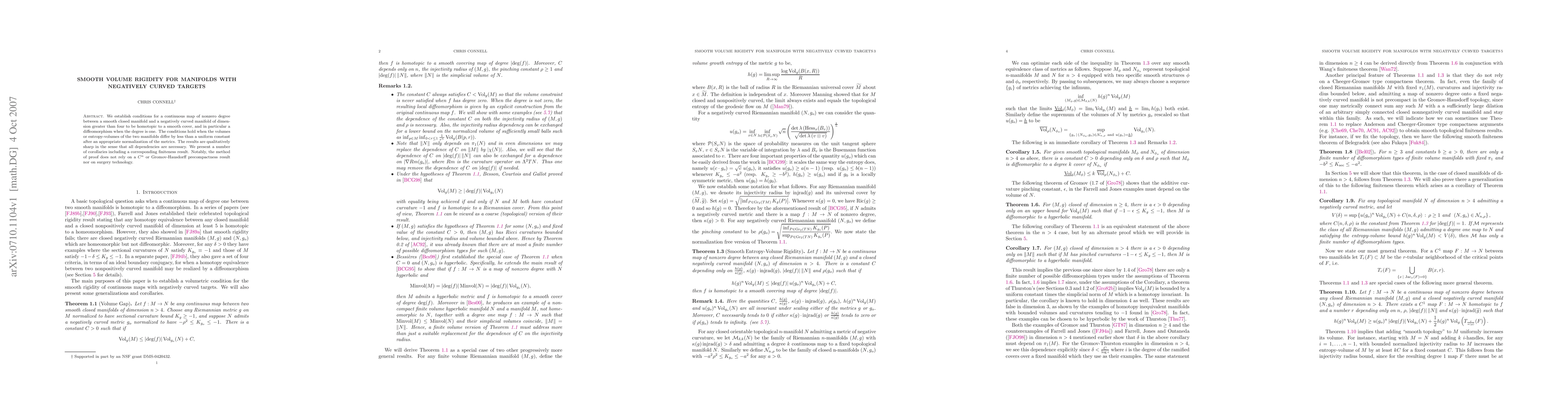 We establish conditions for a continuous map of nonzero degree between a smooth closed manifold and a negatively curved manifold of dimension greater than four to be homotopic to a smooth cover, and in particular a diffeomorphism when the degree is one. The conditions hold when the volumes or entropy-volumes of the two manifolds differ by less than a uniform constant after an appropriate normalization of the metrics. The results are qualitatively sharp in the sense that the dependencies are necessary. We give a number of corollaries.