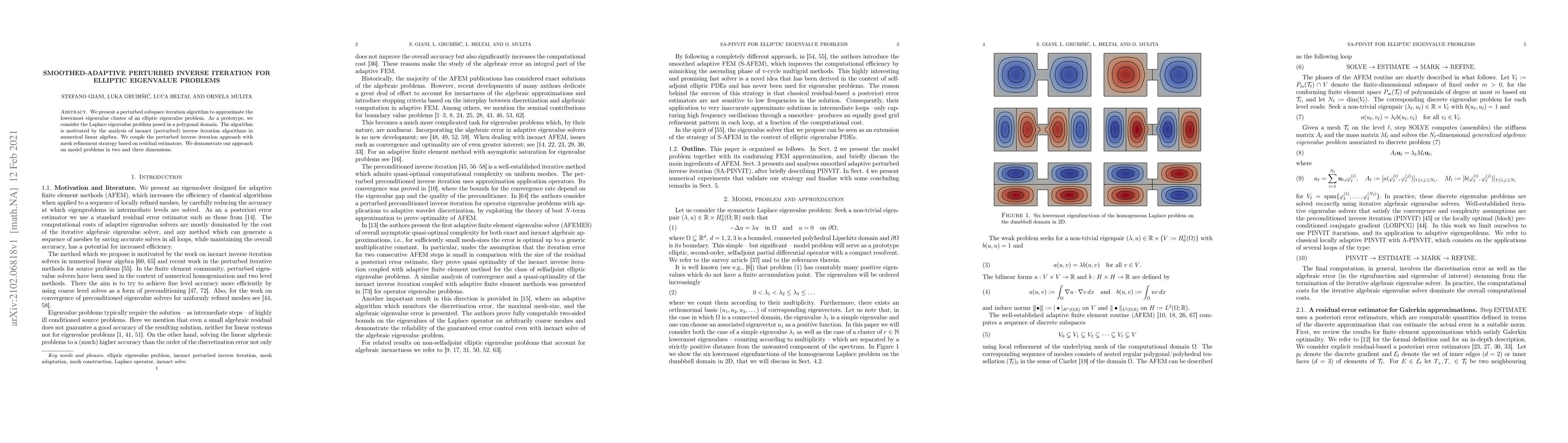 This paper introduces a smoothed-adaptive perturbed inverse iteration algorithm to approximate the lowermost eigenvalue cluster of elliptic eigenvalue problems, specifically applied to the Laplace eigenvalue problem in polygonal domains. The method combines perturbed inverse iteration with mesh refinement strategies based on residual estimators and is tested on model problems in two and three dimensions.