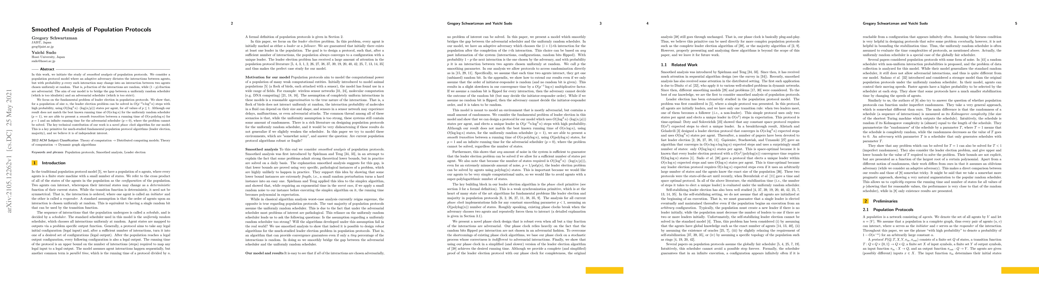 This paper initiates the smoothed analysis of population protocols, introducing a probabilistic model where interactions can be randomized with probability $p$. It demonstrates a leader election algorithm with a running time of $O(p^{-2}n \log^3 n)$ steps, showing a smooth transition between optimal and adversarial scenarios.