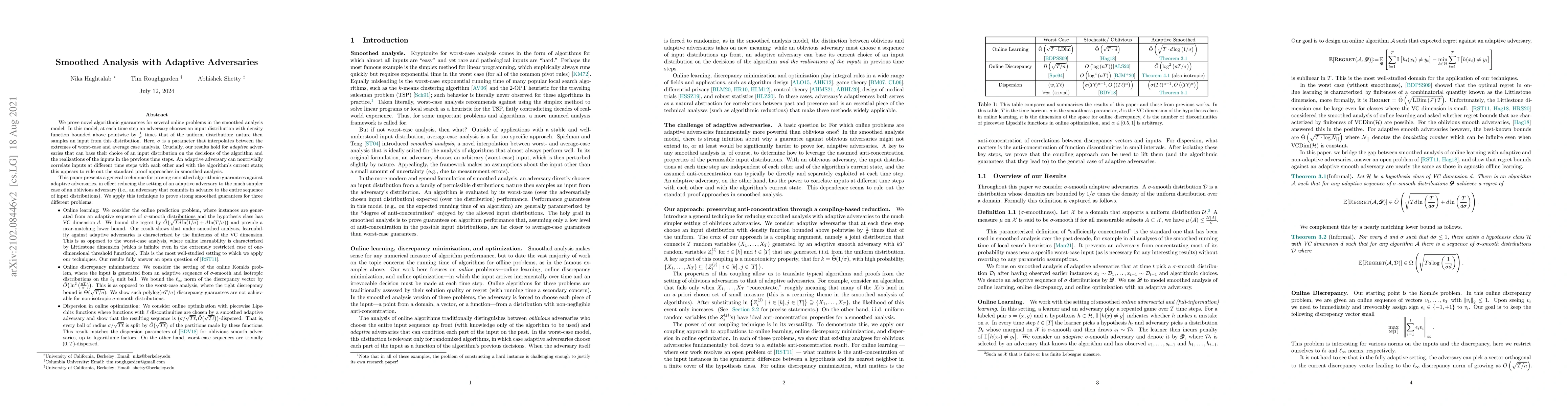 This paper introduces a novel technique for proving smoothed algorithmic guarantees against adaptive adversaries in online problems, effectively reducing adaptive adversaries to oblivious adversaries. It provides strong smoothed bounds for online learning, online discrepancy minimization, and dispersion in online optimization.
