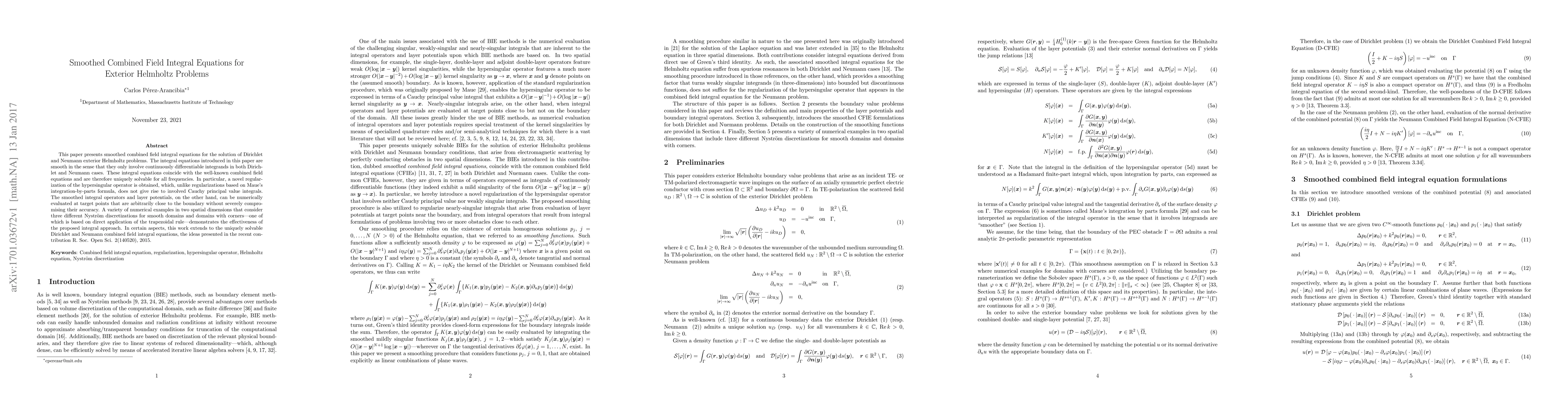 This paper introduces smoothed combined field integral equations for solving exterior Helmholtz problems, ensuring smooth, continuously differentiable integrands and a novel regularization of the hypersingular operator. Numerical examples demonstrate the approach's effectiveness across various discretizations and boundary conditions.