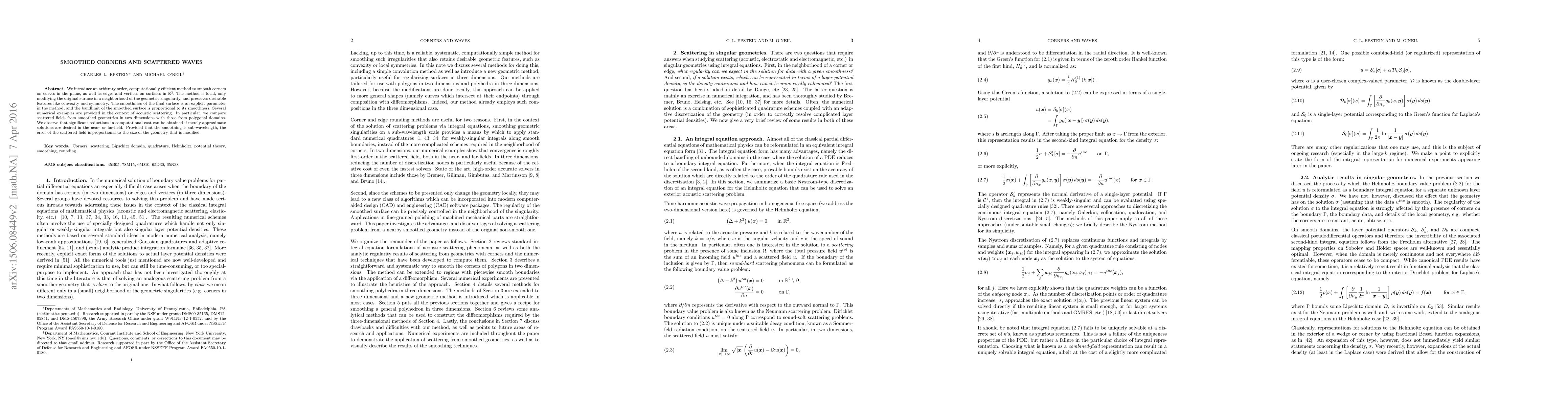 This research introduces a versatile, computationally efficient method to smooth corners on curves and singularities on surfaces, preserving features like convexity and symmetry. The method's smoothness level is adjustable, reducing computational costs for approximate near- or far-field solutions in acoustic scattering problems, with sub-wavelength error proportions to the modified geometry size.