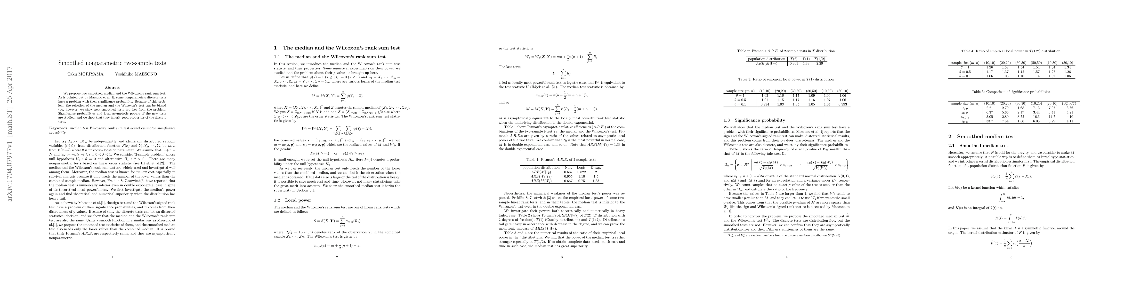 This paper introduces smoothed versions of the median and Wilcoxon rank sum tests to address issues with significance probability in traditional nonparametric discrete tests, demonstrating that the new smoothed tests maintain the desirable properties of their discrete counterparts.