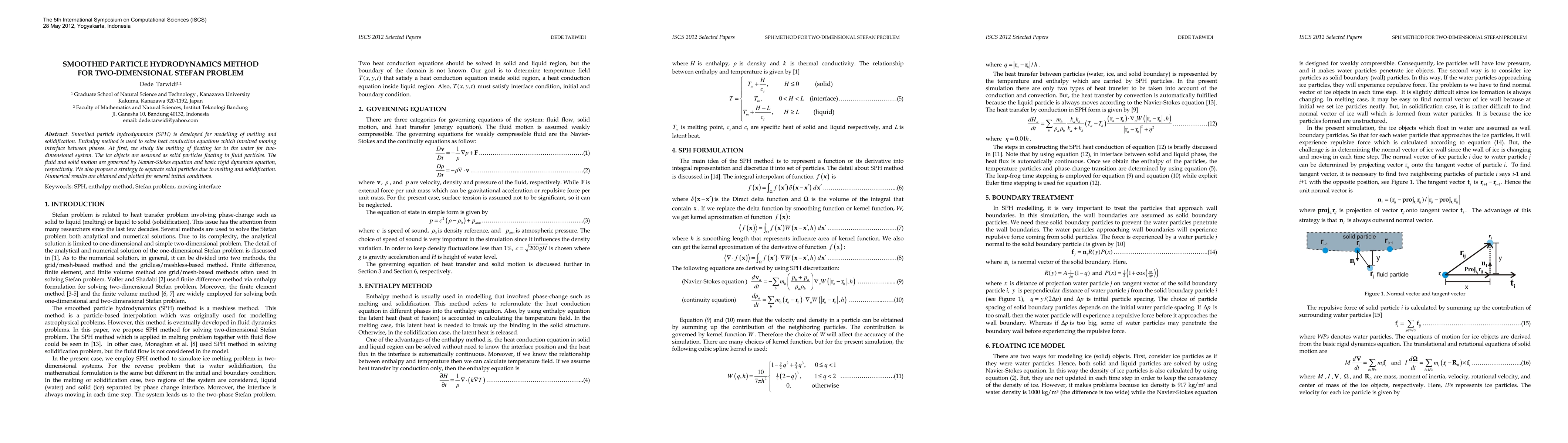 The paper introduces an SPH-based approach for solving the Stefan problem, specifically for ice melting, using the enthalpy method to handle heat conduction equations without explicit interface tracking.