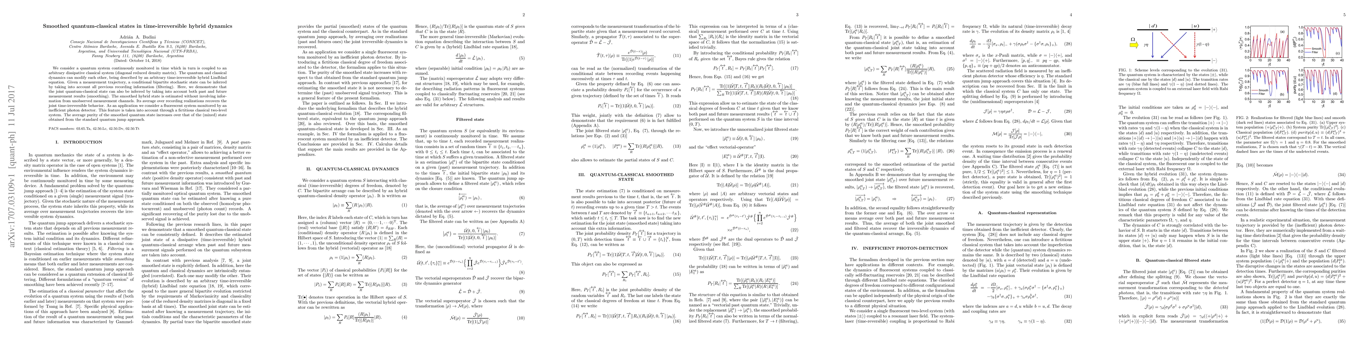 This paper investigates the inference of smoothed quantum-classical states in time-irreversible hybrid dynamics, where a quantum system is continuously monitored and coupled to a dissipative classical system. The authors demonstrate that the joint quantum-classical state can be estimated by considering both past and future measurement results, enhancing the average purity of the quantum state compared to standard quantum jump methods.