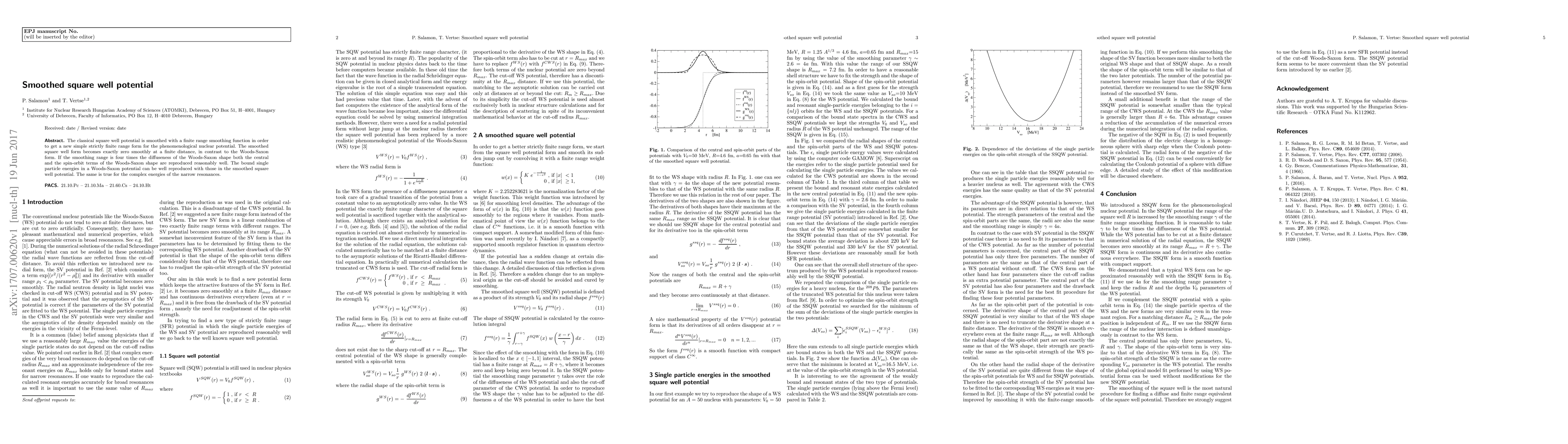 This research proposes a smoothed square well potential to represent the phenomenological nuclear potential, which becomes exactly zero at a finite distance. When the smoothing range is four times the Woods-Saxon diffuseness, it can reproduce the central and spin-orbit terms of the Woods-Saxon potential, and accurately match the bound single particle and narrow resonance energies.